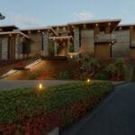 - Architecture contemporaine avec des lignes épurées et des espaces lumineux.