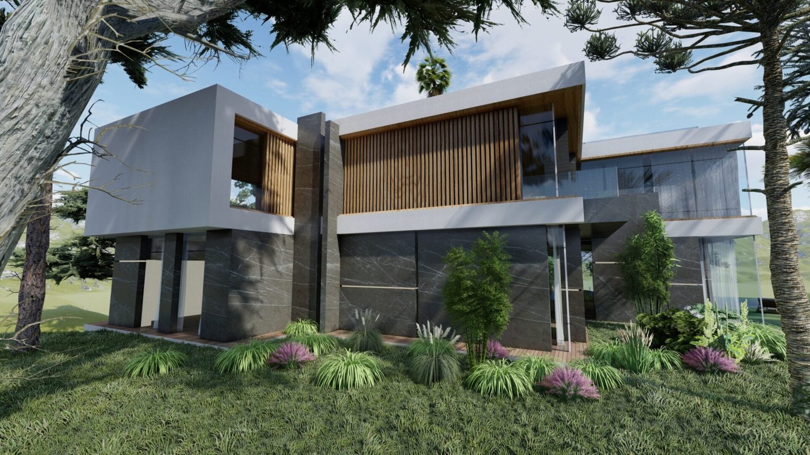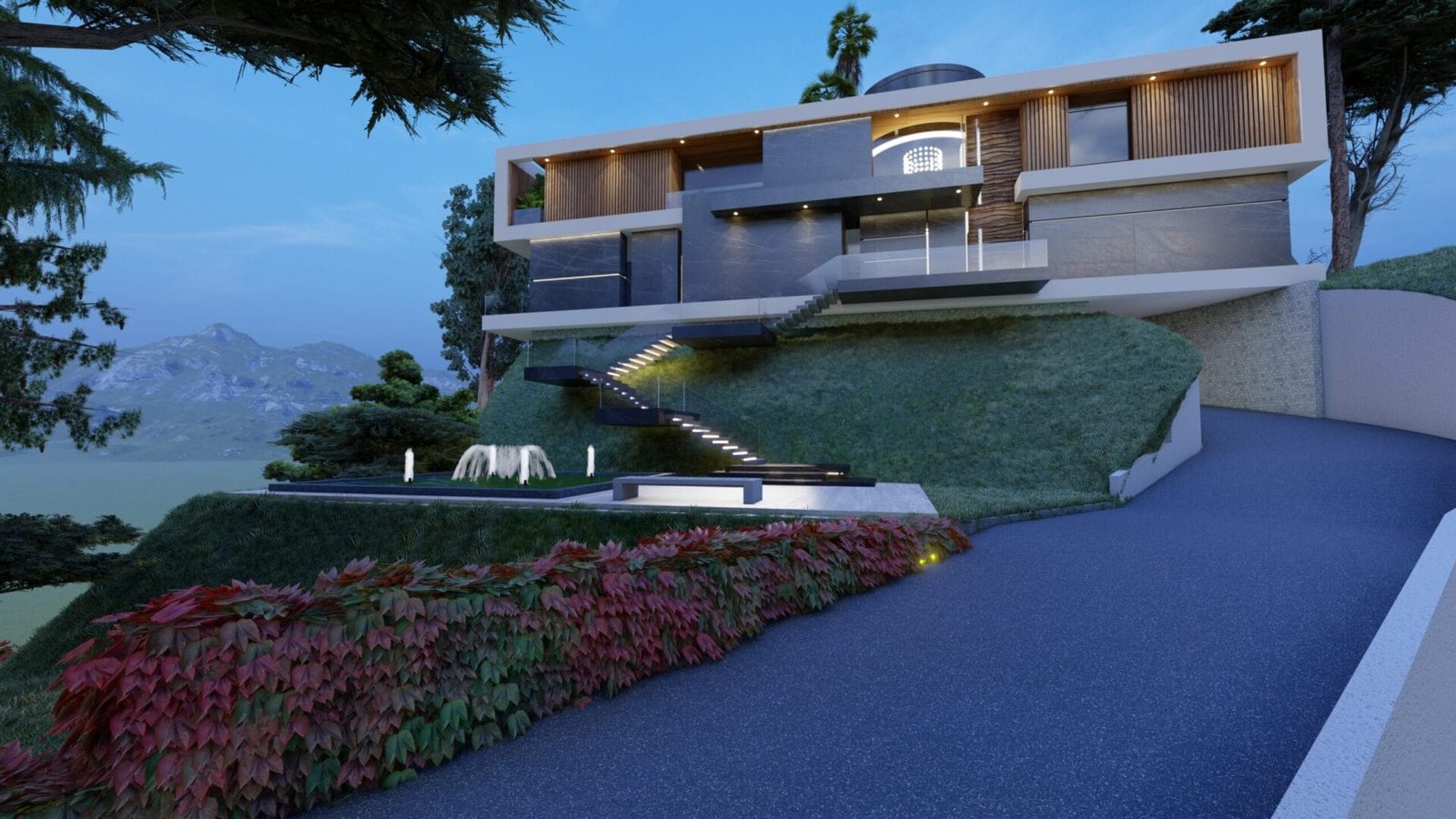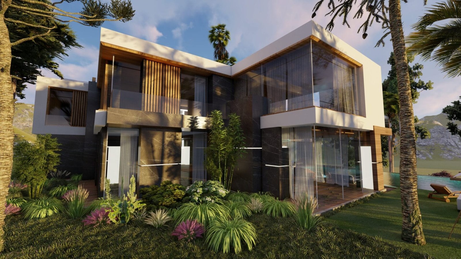 - Architecture contemporaine avec des lignes épurées et des espaces lumineux.