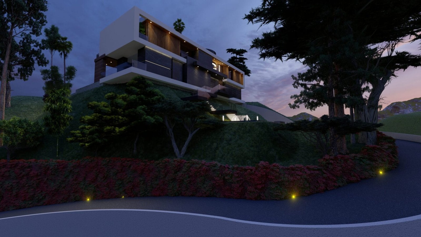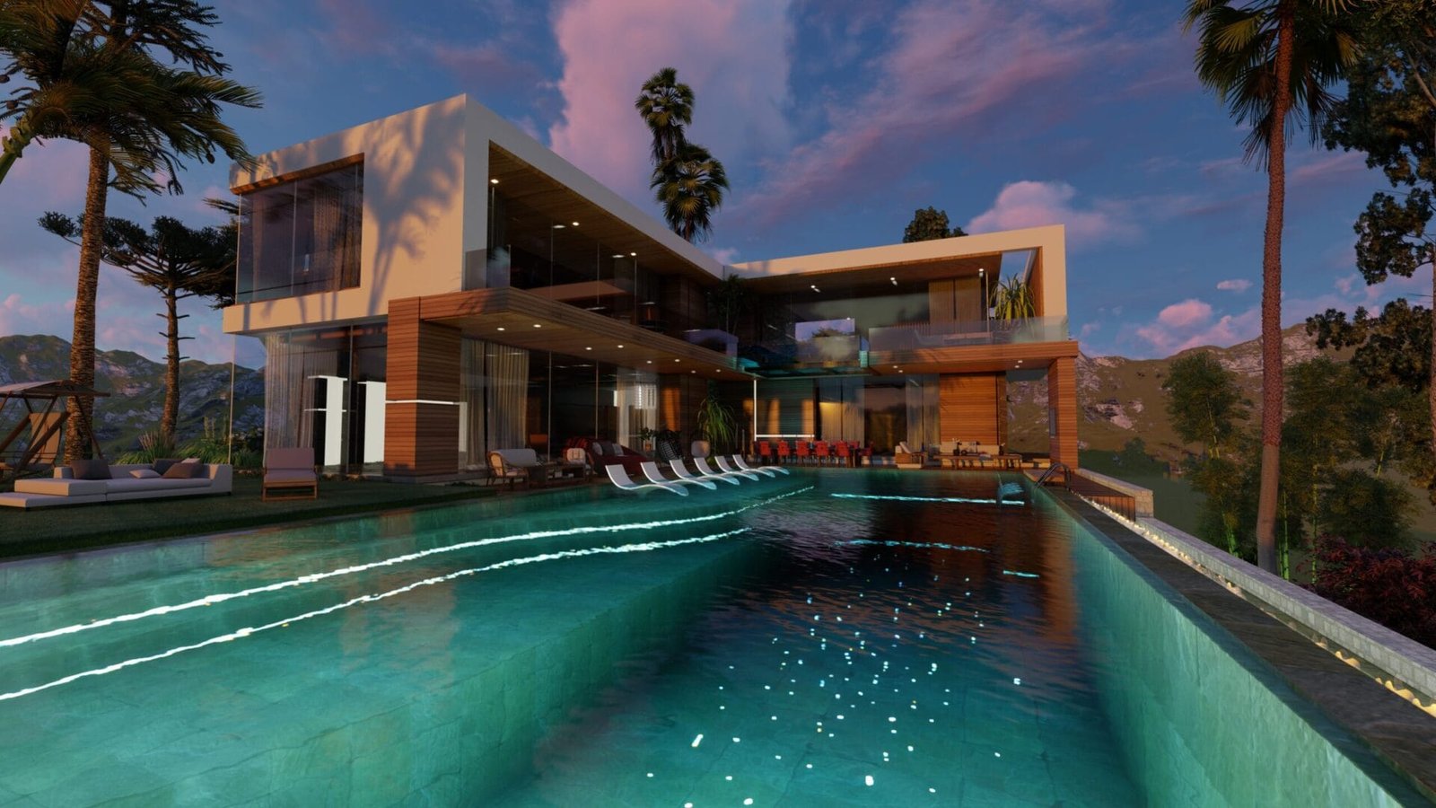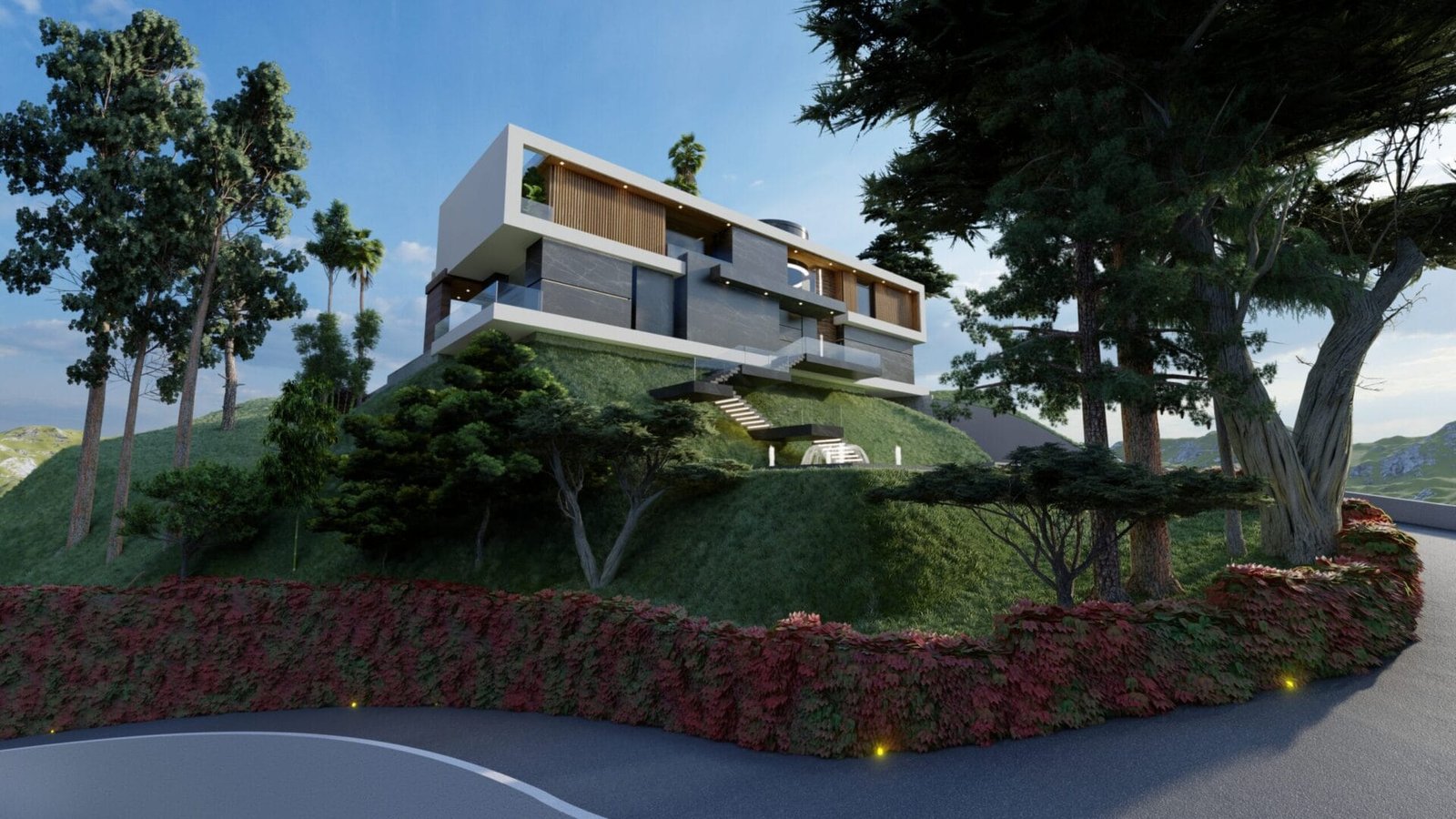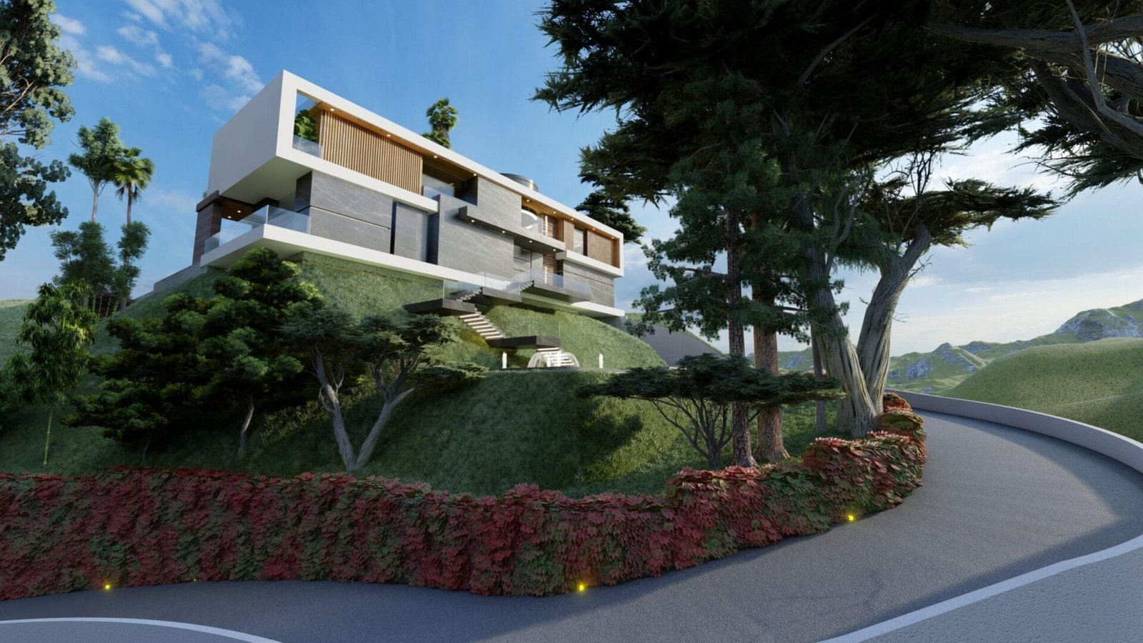 - Architecture contemporaine avec des lignes épurées et des espaces lumineux.